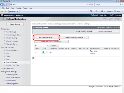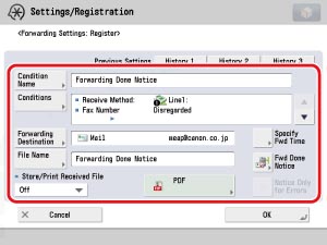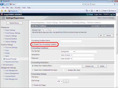 [Enable This Forwarding Condition] is equivalent to the [Validate/ Invalidate] button in the forwarding settings screen on your imageRUNNER ADVANCE machine.