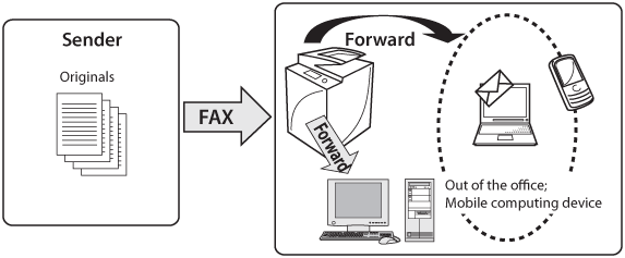 To forward a fax via e-mail, you must have e-mail access and specify e-mail settings on the machine.
