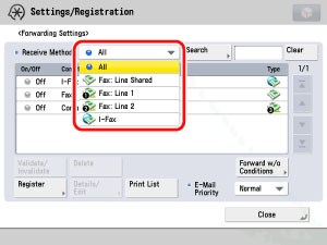 You can set a maximum number of 1,000 forwarding conditions with the Super G3 2nd Line Fax Board installed. This number is a total of [Fax: Line Shared], [Fax: Line 1], and [Fax: Line 2].