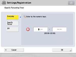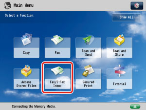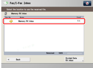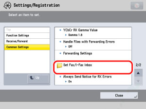 (Settings/Registration) → [Function Settings] → [Receive/Forward] → [Common Settings] → [Set Fax/I-Fax Inbox].