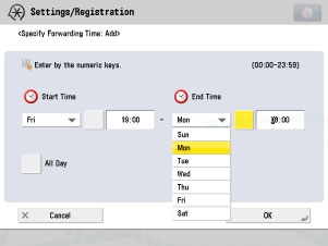 Set to only perform forwarding during the non-working period between 19:00 on Friday and 8:00 on Monday of the following week.