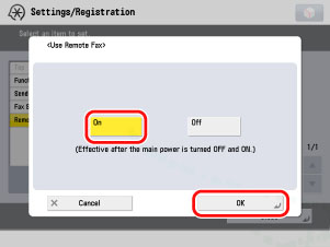 Select [On] for <Use Remote Fax> → press [OK].