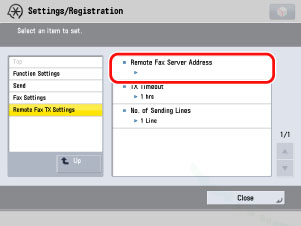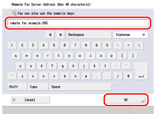 Press [Remote Fax Server Address].
