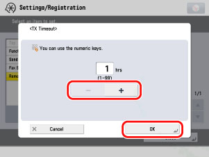 Specify the TX timeout time by pressing [-] or [+] → press [OK].