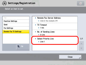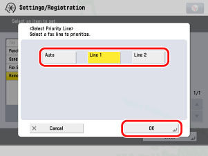 Select [Auto] or the line to use as a priority → press [OK] → [Close].