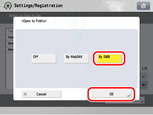 (Settings/Registration) → [Function Settings] → [Store/Access Files] → [Advanced Box Settings] → [Open to Public].