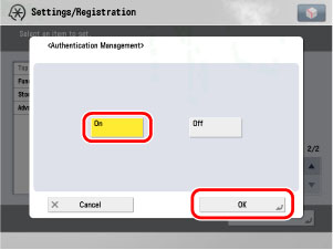 Follow the procedures below to set [Authentication Management] to 'On'.