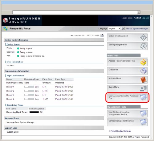 Click [User Access Control for Advanced Box] from the application on the portal screen.