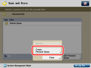 (Settings/Registration) → [Function Settings] → [Store/Access Files] → [Advanced Box Settings] → [Allow to Create Personal Space].