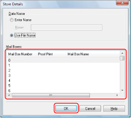 If you click [Get Device Status] on the [Device Settings] sheet, Mail Box names that were registered using the machine are reflected on the printer driver.