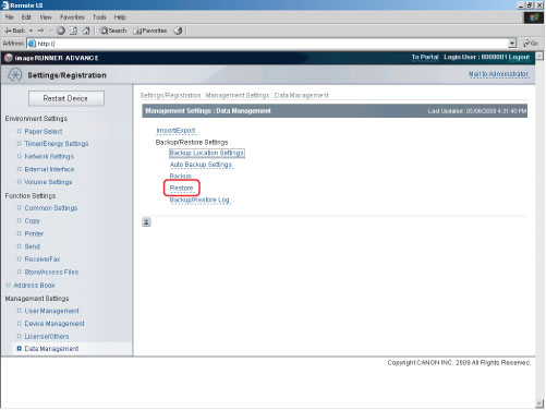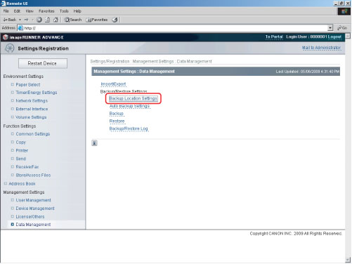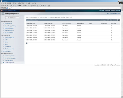 Click [Backup/Restore Log] → check that the back up was completed successfully.