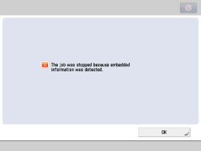 This mode enables you to embed hidden information (TL code) on the background of the copies to help restrict unauthorized copying. You can also embed information such as the user name, date/time, and device name as hidden text. You can analyze the hidden text using the Document Scan Code Analyzer for MEAP and find out whom, when, and with which machine the copy was made. Also, by using the detection mode for the embedded information, you can help prevent scanning of the documents with embedded information or double embedding of information.
