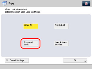 Select the scan lock information condition. As an example, [Password Auth.] is selected.