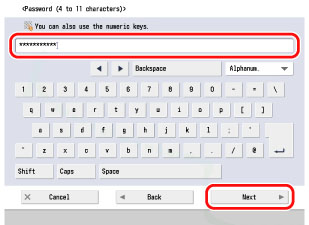 Scanning stops, and the password authentication screen appears on the touch panel display.