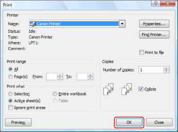 Click [OK] to close the printer driver screen → click [OK] in the [Print] dialog box.