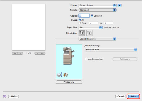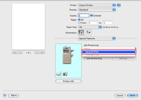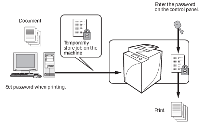 By using Secured Print function, you can prevent others from seeing the printed documents because the print job cannot be started until the password is entered.