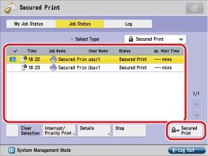 File name is displayed for [Document Name], but you can change it to a desired name. The Secured Print job sent from the computer is stored in the printer.