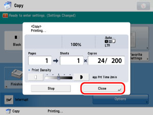 Press [Close] on the pop-up screen that appears while the machine is printing.
