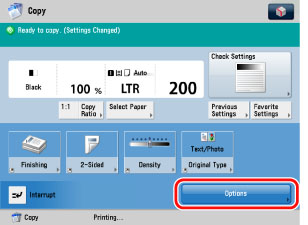 Press [Options] on the Copy Basic Features Screen.