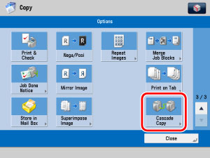 The Cascade Copy mode is used in combination with the Cover/Sheet Insertion or Copy Set Numbering mode.
