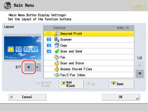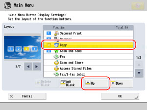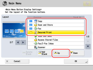 Repeat step 4 to move [Scan and Store] to <2> position, [Fax] to <3> position, and [Secured Print] to <4> position.