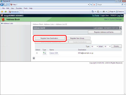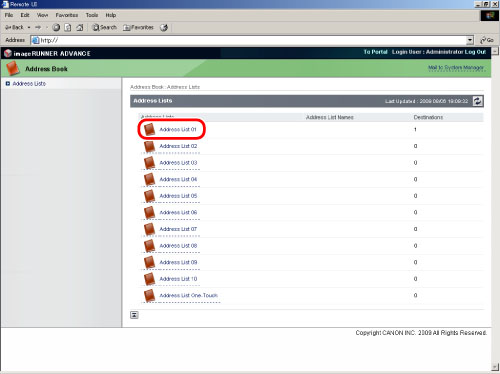 Click [Address List] → [Address Lists 01] on the Address List screen.