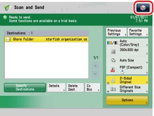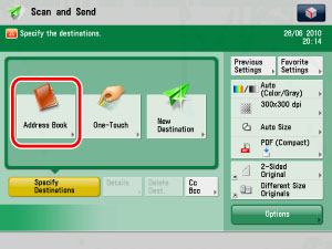 To scan different sized originals, press [Different Size Originals]. This mode enables you to scan different size originals with the same widths (11" x 17" and LTR, or LTRR and STMT, etc.) or different widths (11" x 17" and LGL, or LTR and LGL, etc.), together as one group by setting them in the feeder. You can reduce the time it takes to send because you do not need to send according to the original size.