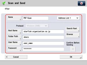 \\Computer name\PDF-Scan Enter the computer name that you checked in step 1 in "Creating a Shared Folder" (for Windows), or step 2 in "Creating a Shared Folder" (for Mac).