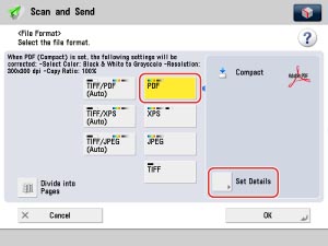 If [Set Details] is not displayed, press [OCR(Text Searchable)] on the File Format screen → proceed to step 7.