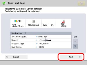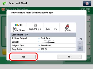 For more information on the confirmation dialog box for the settings, see " Sending a Document Using the Quick Menu."