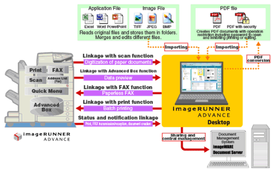 imageRUNNER ADVANCE Desktop is an application which makes imageRUNNER ADVANCE easier to use as well as improves productivity and reduces costs concerning paper and electronic documents in your office.