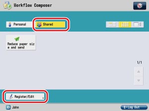 If the Workflow Composer Basic Features screen is displayed, press [Register/Edit].