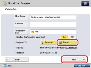 By pressing [Shared] and canceling the setting, the flow is registered only as a Personal flow.