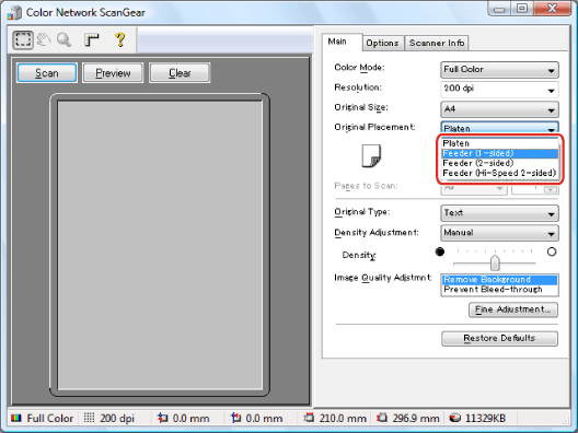 If you are using Network ScanGear for the first time after installing it, the network scanner to be used must be selected with the ScanGear Tool. For details, see "Selecting the Scanner."