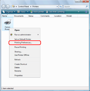 ] (Start) → [Control Panel] → [Printer].