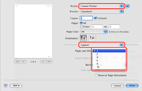 » Print » Printing from a Computer (Mac) » Printing Multiple Pages on One Sheet