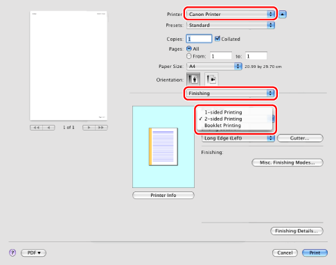 The default setting for [Print Style] is [2-sided printing]. However, for some driver versions, [1-sided printing] is the default setting.