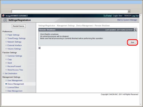 The shutdown process is performed even when the machine is executing a job.