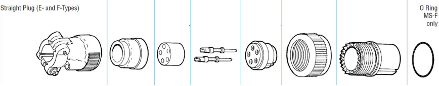 Below is an expanded illustration of a typical MS3106F to help establish design and assembly visualisation: