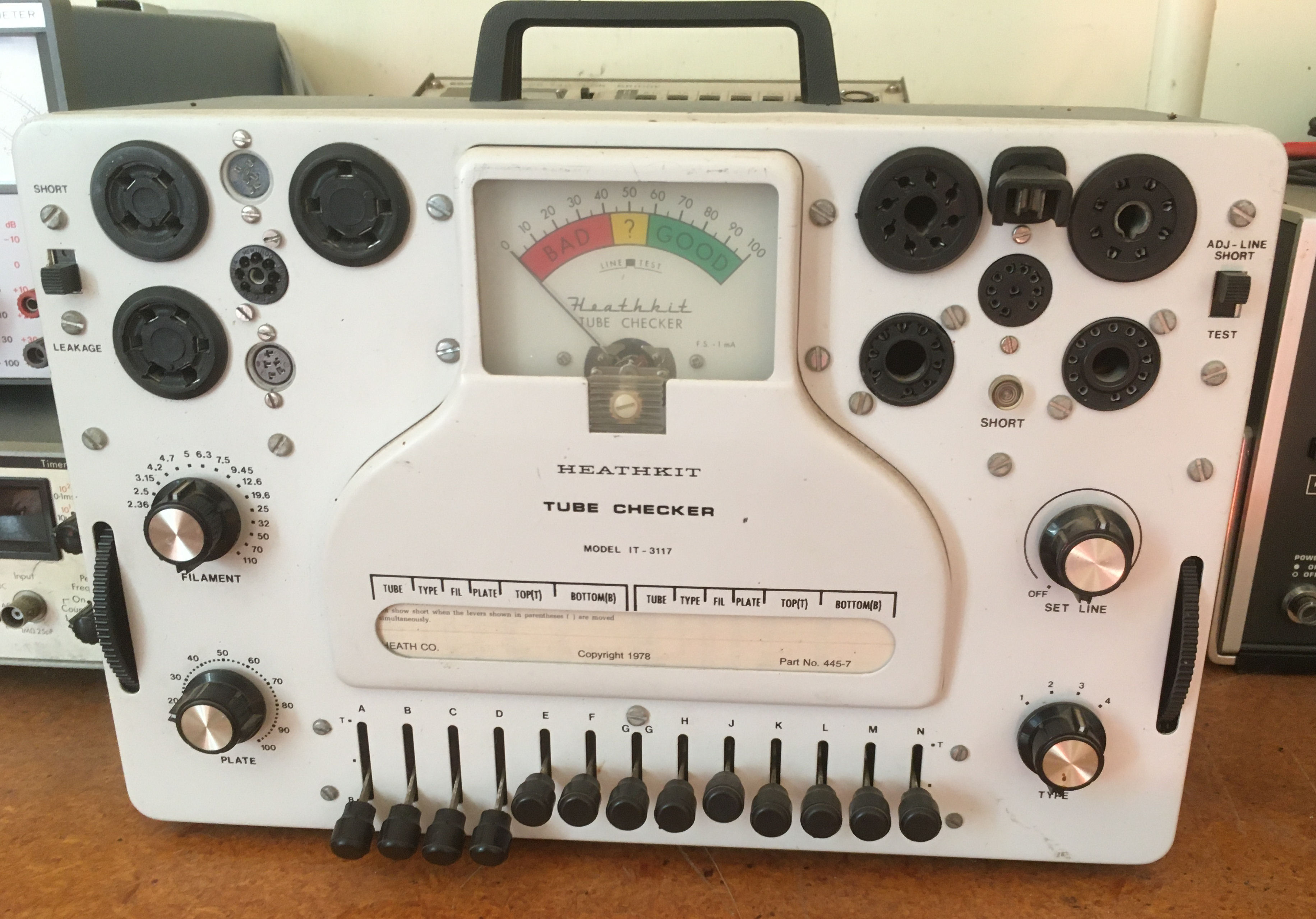 | TI-3117 | Heathkit | Tube/Valve checker with manuals | https://www.casa.co.nz/Equipment/ZL2ANS/Gallery/images/IT3117-Heathkit_7091.JPG | |||||||||