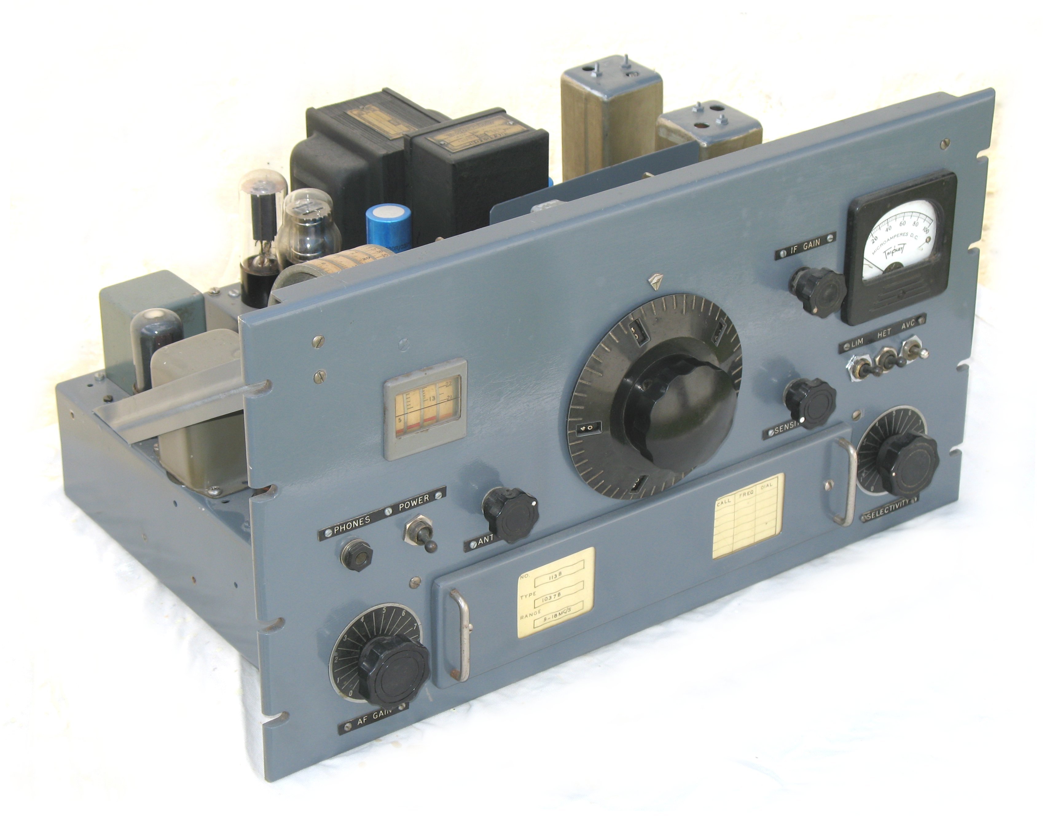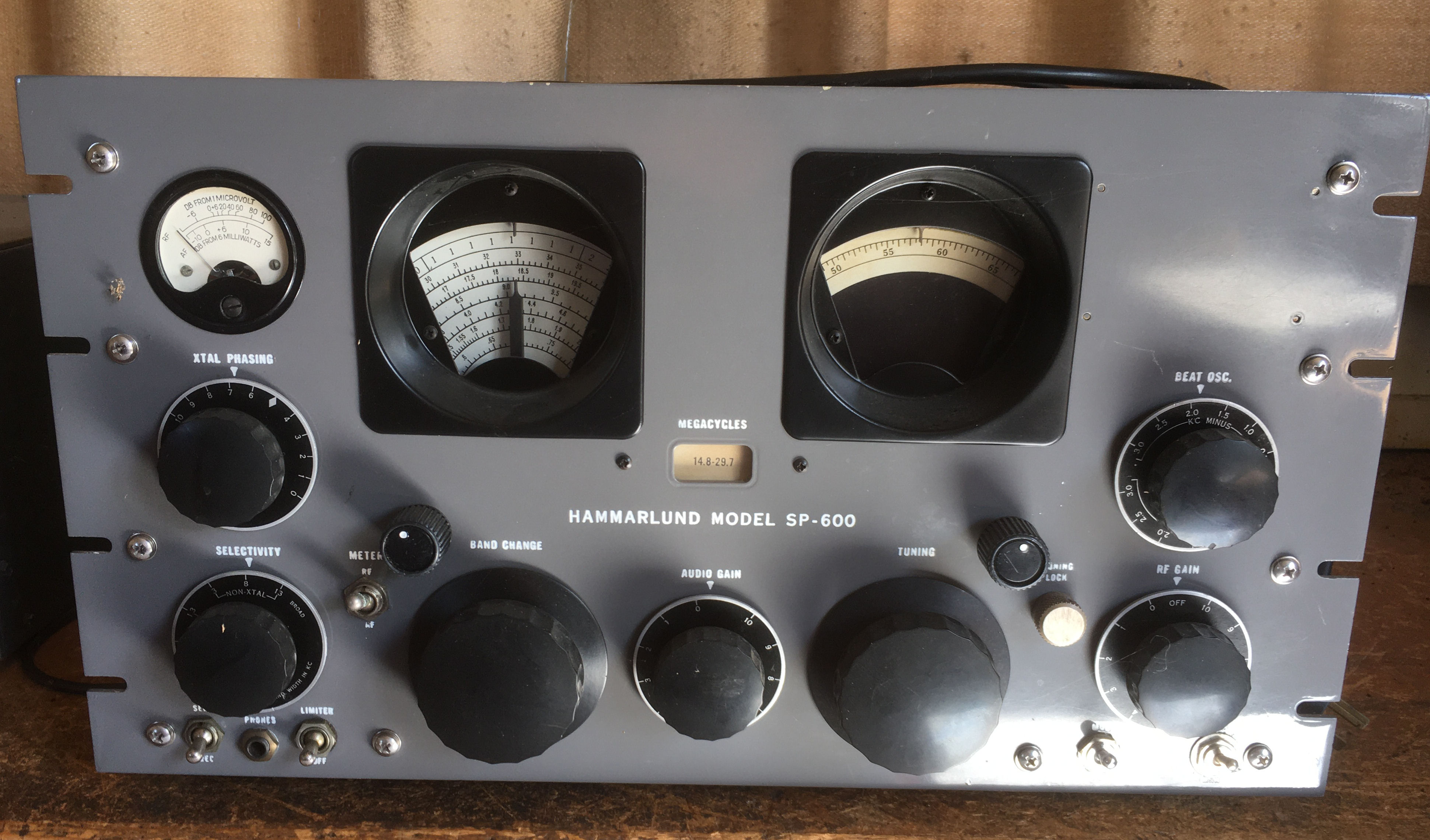| SP-600 | Hammarlund | Hammarlund SP-600 Receiver, 0.54-54 MHz in six bands, AM/CW, | 483w x 267h x 419d mm | 33kg | Believed to be extensively refurbished by ZL2ANS including diligent improvements as known to enhance performance etc. | https://www.casa.co.nz/equipment/zl2ans/Gallery/images/SP600-Hammarlund_7109.JPG | https://www.rigpix.com/hammarlund/sp600jx21.htm | US$500 (parts-only) non-operational | ||||